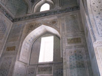 サマルカンドは”青の都”、”イスラーム世界の宝石”、”東方の真珠”と多くの異名をもつ。 チンギス・ハーンが墓石、ティムールが建設したと言われている。