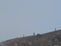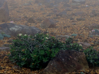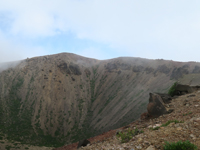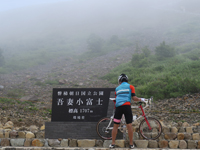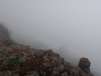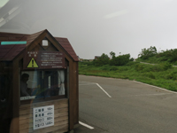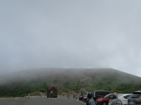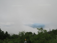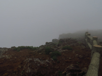 3分の1周ほど行き戻るものの、霧で降り口見えずかなり余分に歩く。向こうから来た人に訊ねると、降り口まだとのこと。