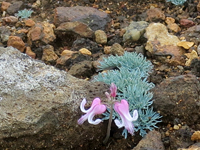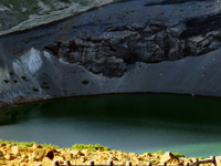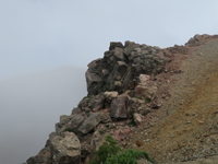 外側を見ながら進み、やっと降り口を発見。石を積んだ山も目印にいくつもある。ひとりで登ったら怖いに違いない。