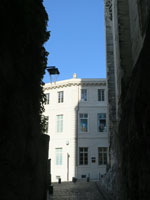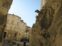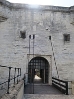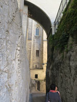 切通しのような壁をくぐり法王庁宮殿Palais des Papesへ