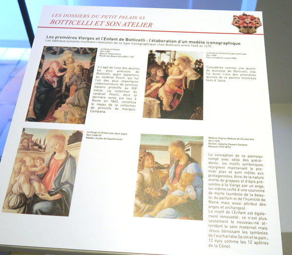 プチパレ美術館Musee du Petit Palaisへ。14世紀に建てられた元枢機卿館。中世からルネッサンス期にかけてのイタリア絵画の傑作が揃う。ボッティチェリ「聖母子La Vierge et l'Enfant」など。