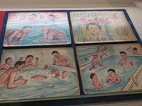 歴史博物館本館に戻ると、「銭湯と横浜」展をやっていた。銭湯ネタだからか、昭和グッズ展示。冷蔵庫、ミシン、洗濯板、洗濯機。アイスクリームメーカーと思ったら、それも洗濯機。