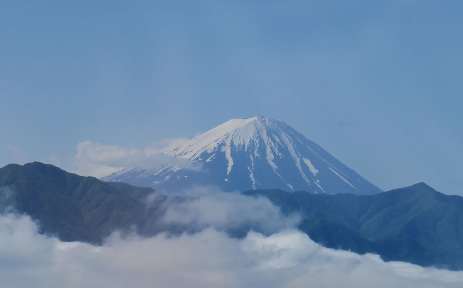 山梨市街地からは残念なことに手前の山並みが邪魔をし、富士山が見えないらしい