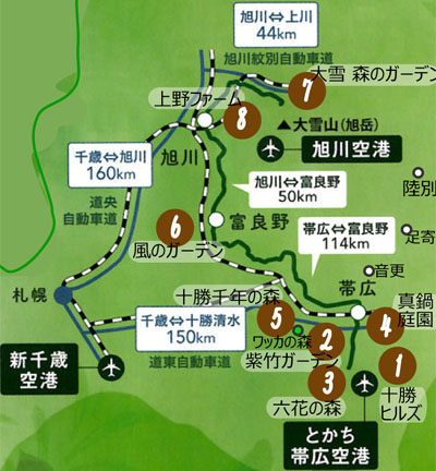 【3日目】ホテル→ワッカの森→十勝千年の森→富良野 風のガーデン→富良野ペンション