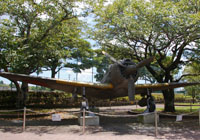 ←朝8時台なのでまだ海水浴客もおらず。 次に宮崎県庁に向かいます。今日は日曜、市が立っており、駐車場がわからず、歩行中の人に訊ねると丁寧に教えてくださり無事到着。旬の観光地です。観光客も多く、門付近記念撮影をする人が続きます。人の写らない写真を撮るのはたいへんでした。