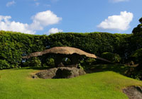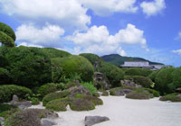 名勝仙巌園(磯庭園)です。 1658年に19代島津光久が別邸を建てたことが始まりとします。2008年に築邸350年を迎えました。園内には数多くの史跡が残り、特に御殿とその前庭からは桜島を筑山に、錦江湾を池に見立てた雄大な景色が眺められます。