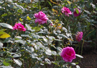 深紅、黄色、ピンクと彩り豊か。私がいちばん惹き寄せられたのは薄い紫色でした。バラといえば花束。このように土から植えられていると野花のような。花のきれいな形・・・は蕾がすこーし膨らんだようなところでしょうか。開花していくと、菊なのかボタンなのかわからなくなるような。ところで、バラ科の野菜(果物)は多く、イチゴ、モモ、梨、りんご、さくらんぼなど。
