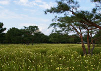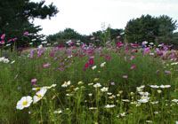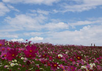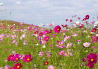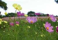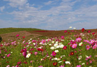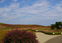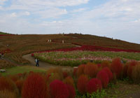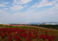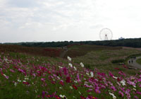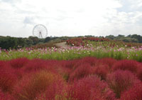みはらしの丘いちばん高い地点は標高54m。ひたちなか市で最高標高。茨城県内の工事で発生した建設残土を使用して整備。H18年まではコスモス一色の風景だったが19年からコキアを植栽し、コキアとコスモスで丘を演出。