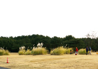 コスモスの奥にはBMXのコース。パターゴルフ場、バーベキュー場などもあり、大人も楽しめる施設となっています。