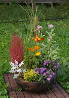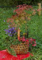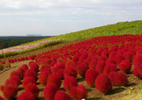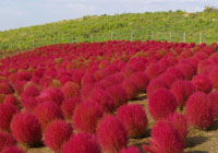 コキアはアカザ科の1年草。夏場はもこもことした緑色の姿で秋には真っ赤に紅葉。実は「とんぶり」として有名。枯れたコキアはクラフトの材料として「ほうき」作りなどに利用される。