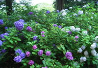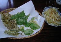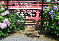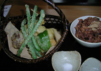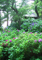 >>蕎麦巡り五 >>蕎麦巡り六 茨城はこの頃蕎麦どころとして売り出し中!ということで蕎麦店を回りつつ観光してきました。本に載っていた笠間の「和味」〜雨引観音〜笠間稲荷、奥久慈「慈久庵」〜竜神大吊橋を巡る旅です。左の地図はJR路線図になっていますが、移動手段は車です。 北関東自動車道で友部ICを降ります。北関東自動車道は日本でベスト5?に入るほどの赤字路線。ガラガラです。 筑西市方面に向かいドライブ。筑西は旧下館市らしい。小さな看板を見つけ「和味」(なごみ)へ。普通の一軒家。横に蕎麦打ちのための小屋。12時半の到着でしたが、もうすでに蕎麦は売り切れ。「・・・。」「蕎麦がきでしたら、お出しできますが。」ということばにすがりつきます。 蕎麦焼酎を蕎麦湯割り。こちらの蕎麦湯はそば粉をお湯で溶いたもの。今日は14人前の蕎麦を打っていたそうですが、あいにく完売。夕方、夜はほどんどお客が入らないので、今日はもうおしまい。 蕎麦がきがきました。大きい。食べ応え十分。温かいつゆの中に入っています。野菜の天ぷらはインゲン、ピーマン、椎茸、かぼちゃ、りんご!玄米ごはんはランチを頼むと付くらしい。こちらの奥様がマクロビオティックをされており、ケーキ、コーヒーもこだわりのものがでてくるとのこと。女性客が喜びそうです。 ちなみにこちらのオーナーご家族は3年ほど前に松戸から越され、こちらの一軒家に一目惚れして移り住んだそうです。 蕎麦を切った時の残りの切れ端をもってきてくださいました。胡麻だれもいただいて、つけていただきます。やはり蕎麦はおいしいなあ、蕎麦がきより…。がんばって蕎麦がきを食べ続けました。 教訓、予約は必要です。 店主に雨引観音が今、紫陽花見ごろということで行ってみることに。笠間市と思ったら、桜川市。以前は何村だったのか。