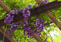 見えてくる植え込み。文字…。新芽が出てきてなんとなく読みづらい。答えはあとでわかります。