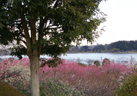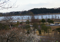 偕楽園は高台になっており、田鶴鳴梅林、その先に千波湖を臨む。