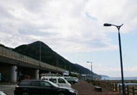 | <親不知>ピアパーク、昭和63年7月、北陸自動車道の全線開通を記念してオープン。親不知海岸の海上を走る北陸道の橋脚空間を利用した全国でも珍しい型式の「道の駅」。 |