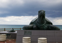 ピアパーク片隅の「翡翠ふるさと館」(無料)に入ってみます。青海・糸魚川地区は、硬玉ヒスイ文化発祥の地で、青海川上流にはヒスイの原産地があり。今から約5000年前、縄文時代の青海町「寺地遺跡」では人々がヒスイを加工し、その製品は生命の再生など特別な霊力を持つ品として全国に運ばれたそうです。 |