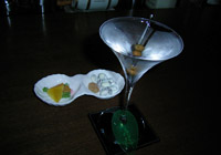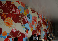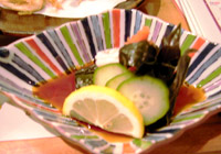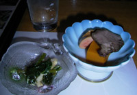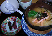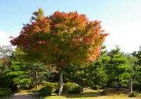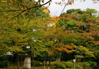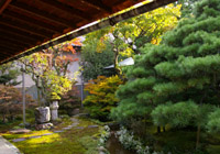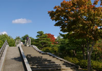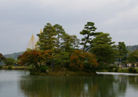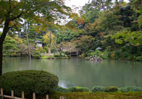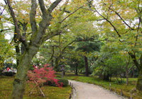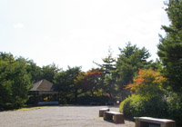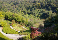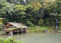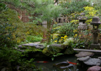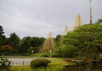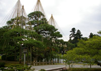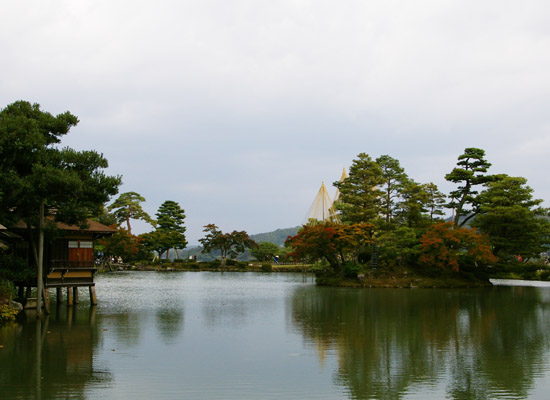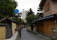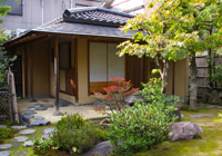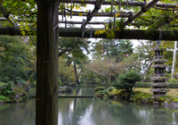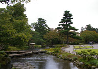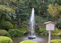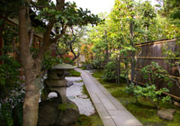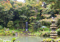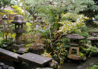 ↓金沢職人大学校長町研修塾。こちらはご自由に庭をご覧くださいとあり、散策。山景園と名づけられている、茶庭で、金沢のいずれの街角で見ることのできるなじみの深い風景をしている。医王山を薬師如来にそえ、諸ホトケを戸室山、卯辰山、野田山、高尾山、キゴ山、庄司峰、国見山、倉ヶ岳の山々になぞらえ、自然石が配される。野点も催される。