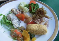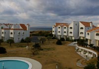 ホテルへ。イチゴ狩りプラン付きです。1日目イチゴ狩りに行けず、2日目でも大丈夫とのこと。目の前に太平洋、中庭にはプールがあります。ホテル棟のほかコテージも建っています。