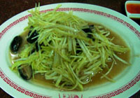 チャイナタウンの”和盛豊”へ。しゅうまい飲茶が運ばれてきて好きなものだけ選びます。 フカヒレスープとカニ肉入り麺です。 魚介類のたれのせです。