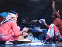 タイムスリップしたような生活を送るばあちゃん、れっきとした現在。それがタイマグラの今。春夏秋冬、毎日が忙しい。堅い豆腐がごちそう。寒さのおかげで豆腐、ジャガイモが凍る。凍っては水分を出し、乾いたジャガイモを挽く。 |