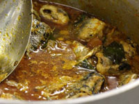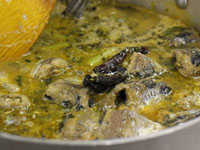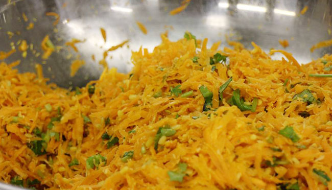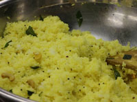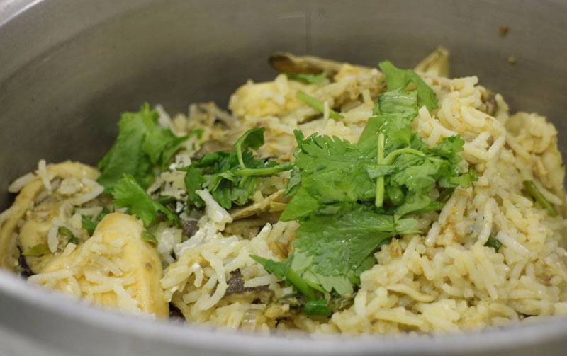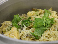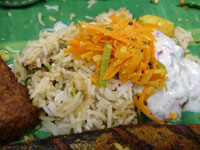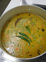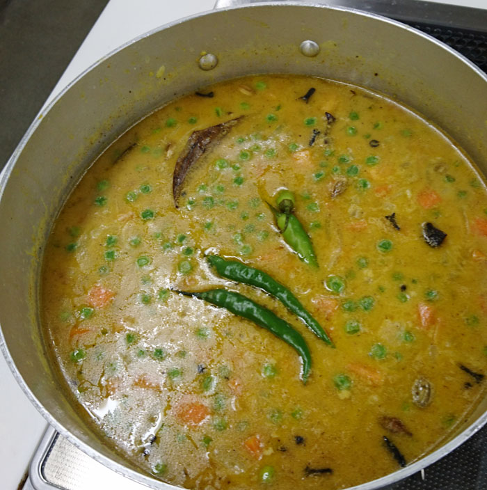 ニンジン・南瓜・グリンピースのベジタブルクルマは、カルダモン・クローブ・八角とスパイスが効いている(クルマはレッドチリ、赤唐辛子を使わず青唐辛子を使うのが特徴) |
