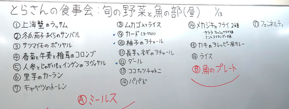 | 【とら屋食堂 とらさんの冬の旬の野菜魚南インドミールス大会】赤羽文化センターにて |
