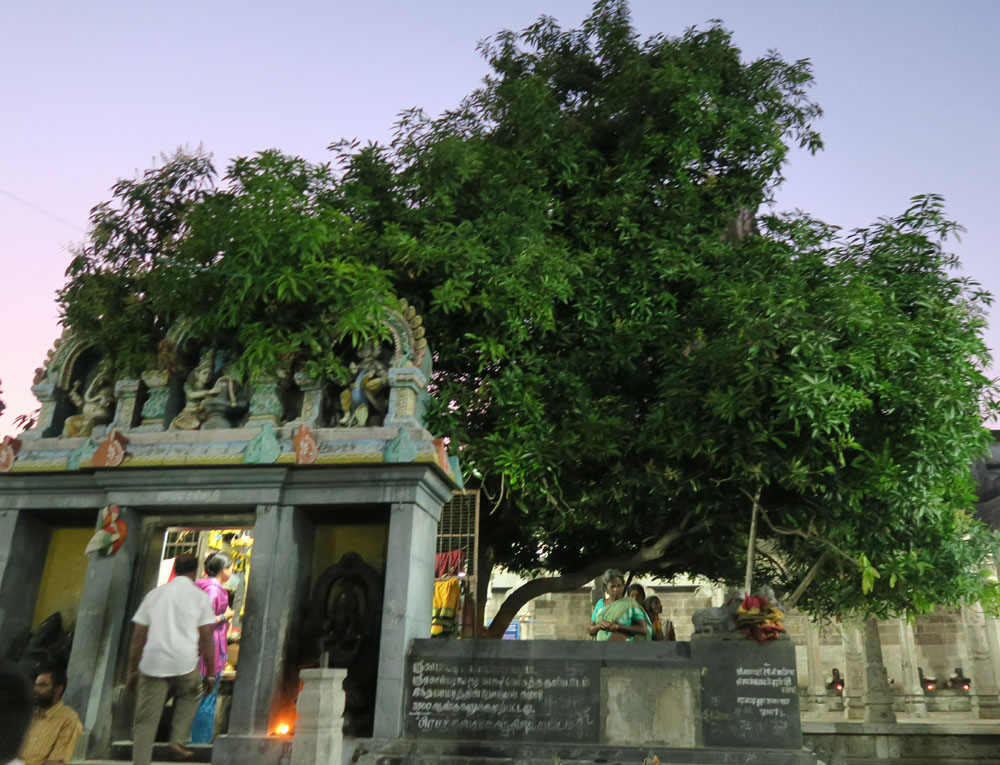 樹齢3500年のマンゴーの木の下、この機の下でシヴァとカーマークシ女神が結婚したという神聖な場所。4つの枝には甘、苦、酸、辛の4つの異なる味のマンゴーが実る。