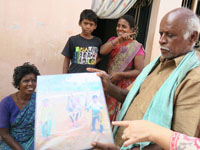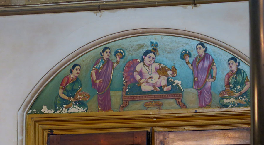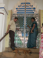 チェッティヤールという莫大な資産を築いたコミュニティの本拠地。草分け的存在の兄弟のマンションを見学。ワンコが玄関階段で昼寝中。