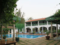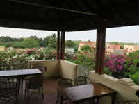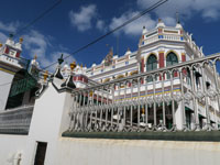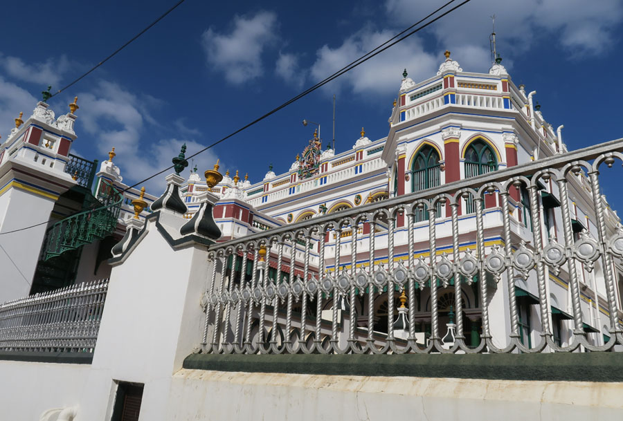 青空にチェッティナードパレスがよく映えます。チョーラ―王朝時代をまねています。