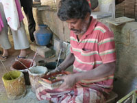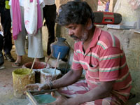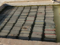 乾かし、水につけてできあがり。できたてほやほやを買う人もいました。