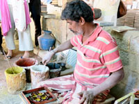 こんな床材だとウキウキします。1枚50ルピーですが、なんせ重い!
