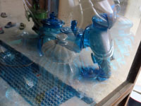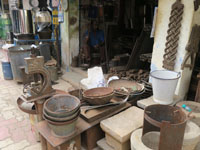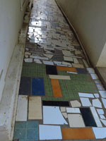 従業員の通路の方の床タイルは砕けているけれどカラフルでステキ