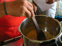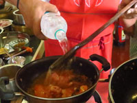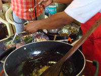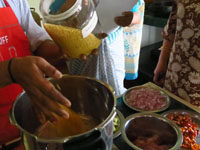 調理教室は中庭に面していて屋根はあるもののほぼ外状態
