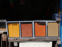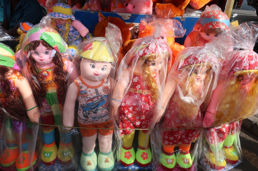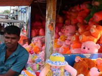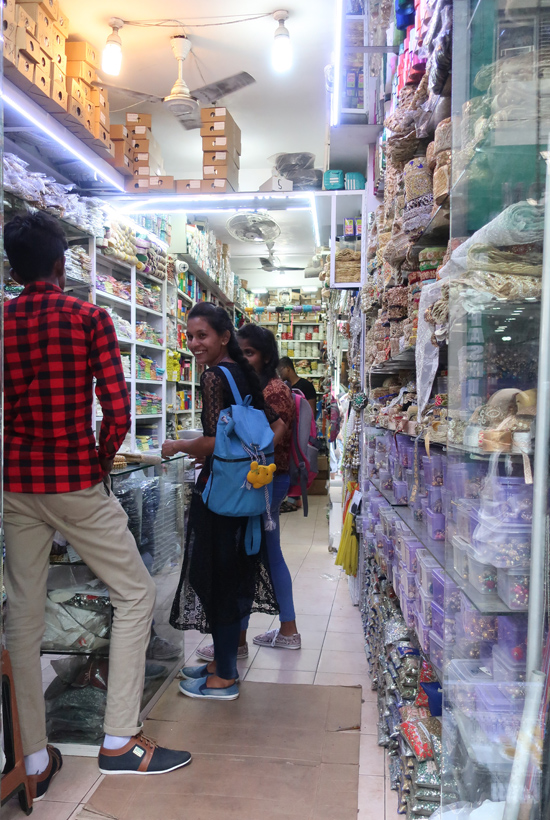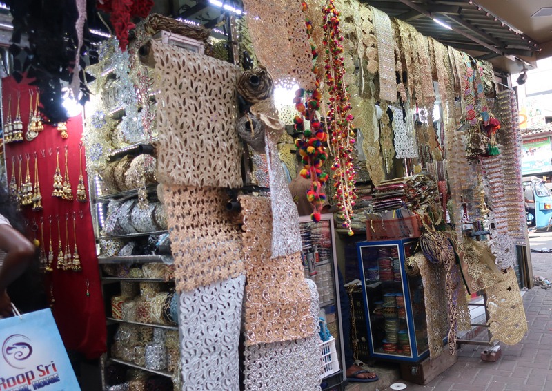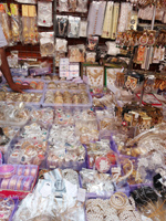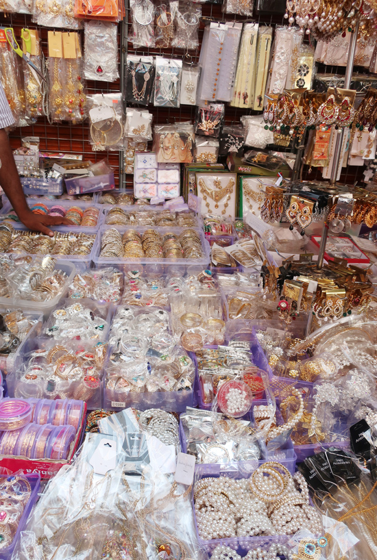サリーを着る際に着けるフェイクのアクセサリーがたくさん