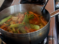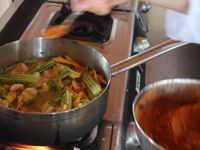 海鮮鍋、お米も入っていてボリュームあり、そして辛い |