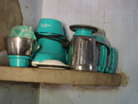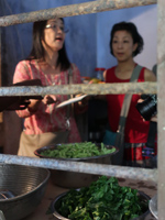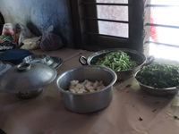 この食堂の前に、サリープロジェクトでお買い物、バッグ購入 |
