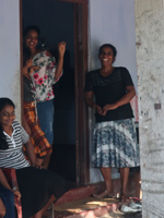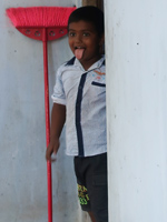 興味深々の男の子は舌出している(この子は、訪問時バスを降りて家に着くまでの道のり途中にまだかな、みたいな感じで来てくれていた)