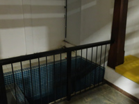 ホテルの部屋内1階の奥のドアを開けたらプール発見 |