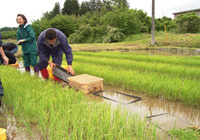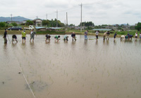 朝10時頃から、田んぼの中、プラスチックのビール瓶入れみたいなかごを椅子にして苗床から苗を掬い出し、プレートに1苗ずつ並べていく。その後、田んぼで苗を植えつけていく。その後、大谷さんの家の庭で野外ランチ。外で食べるのはおいしい。ご飯はお釜で炊いたのだろうか。お釜に入っている。火力は何だったのだろう…。豆ごはん、何か具が入ったご飯。タイカレー、大根サラダ、野菜炒め、そら豆、高野豆腐卵とじ、サラダ(胡麻ドレッシング、ニンジンドレッシング)、ごった煮汁。家の前に畑。そして針葉樹の森。