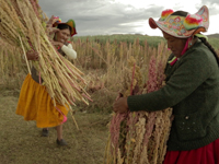 アンデスといばジャガイモ、そしてトウモロコシ。が、気候変動で雨が降らず心配する。温暖化の対処として標高を上げて作物作りに励む。有機で作る作物のおいしさを語り、そしてタネの交換会にわくわくする。まるでアメリカ、EUでやっているのと同じことをしている。 |