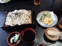 地粉で色も精白されておらず少し薄茶色、太めでおいしい。天ぷら付き