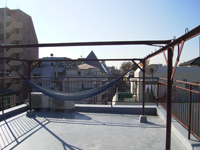 屋上では、2年前から米作りを始め干す作業に大活躍。もちろんBBQもするそうです。ハンモックが吊るされていました。