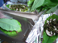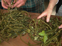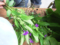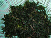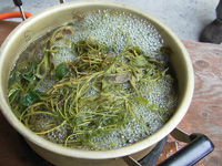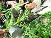 こんにゃく、塩漬けアザミ購入。調理方法をおばちゃんから教わる。
