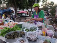 おすそわけの精神 雨は降らないので予定通り毎回開いている。各店の傘は寄付から。カエル、自然のもの獲ってOK。