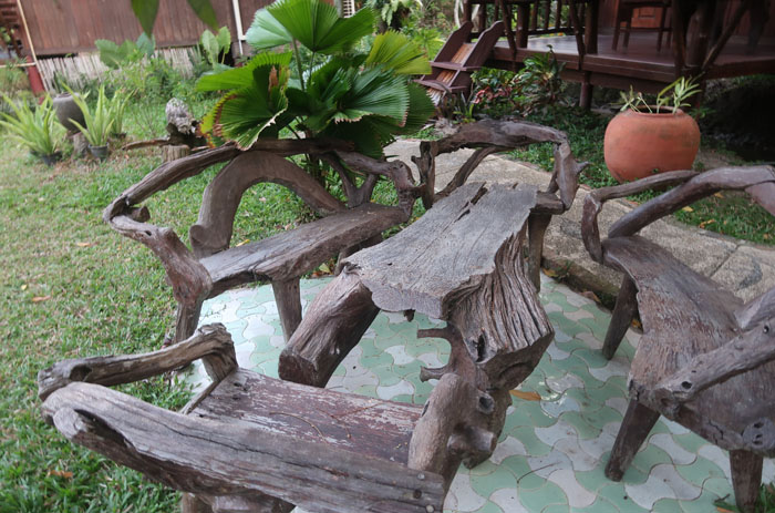 スースーバンドの好意によって、サネー・ウィチャイオン氏の妹が経営しているうカフェで馳走になる。サネー氏は元イーサンのNGOCODの委員長として緑の市場の創出に携わった人。 |