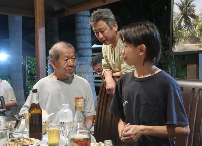菅野さんがそばの松尾蒼太郎くんに質問、タラサードト大学の状況について、授業はすべて英語で行われ、別にタイ語の授業を取って勉強中。タイ人の学生はリッチなプール付きコンドミニアム(8万円/月)に住んでいる。エリート大学に通うタイ人の親は富裕層ということ。 |