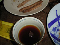 最後にフライパンで煎ったコーヒーと昨日挽いた粉で作ったグリッシーニに日本ミツバチの蜂蜜をつけて食べる。どちらもおいしく、コーヒーお代わり。