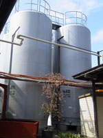 白ワインはフリーランジュース(自重によって自然に流れ出る果汁)を大きな発酵樽に。汁液発酵。