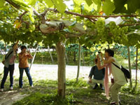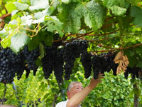 ワイン向きのよいブドウを作るには、朝夕の気温差があること、紫外線が強いこと、晴れの日が多く乾燥していること。冬に剪定、芽かき作業、6月梅雨時に摘房作業して1本に1〜2房にする。