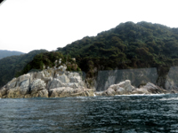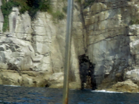 波が穏やかな時期は向こう側に回り、下船し、そばで見られる。年に50日ほど可能で、7月8月らしい。