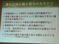 講演前に遺伝子組換えの簡単なクイズあり